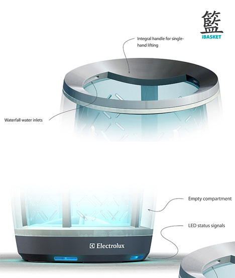 過去我們可能是將穿臟了的衣服往那里隨手一扔,到一定量了再一起拿到洗衣店或者自己在家里用洗衣機洗,可以當你去洗的時候卻發現放在那里的衣服已經有很大一股味道了。這有可能是你工作很忙,但也不排除你的懶惰。所以現在設計師梁國鵬為了解決這樣的問題設計了一款稱得上是真正的全自動洗衣機。首先,iBasket是一個臟衣服盛放籃,它可以保證臟衣服發出的汗漬味道不污染室內空氣,而從這一步開始,消費者可以不用再管它所盛放的臟衣服了。然后,當衣服積累到一定重量的時候,iBasket可以自動開啟洗衣程序,從加洗衣粉,到注水,到洗滌,到甩干,一步到位,全自動完成。最后,衣服洗滌完成,iBasket可以發信息到手機或者PC,提醒消費者晾曬衣服!這樣是不是實現了真正意義上的全自動?