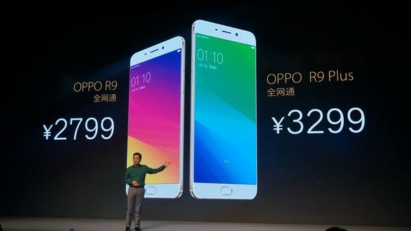 OPPO R9系列新機有金色和玫瑰金兩種配色,R9售價2799元,R9 Plus售價3299元,3月24日開始線上線下全渠道首發。