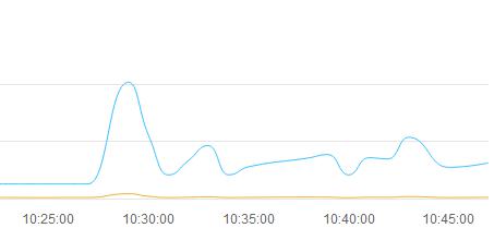 根據(jù)網(wǎng)站訪問數(shù)據(jù)來看,在10時25分之前已經(jīng)是滿載狀態(tài),之后流量驟升,應該是網(wǎng)站提升了帶寬。在10時28分達到最高值,后訪問數(shù)據(jù)呈起伏狀態(tài)。