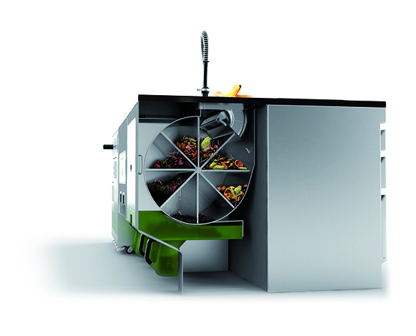 而現(xiàn)在,毫不含糊的華麗震撼——執(zhí)行有機廢物處理的是非常真實的蚯蚓!在第三個裝備艙有連續(xù)轉(zhuǎn)動的鼓輪,方便這些蠕蟲統(tǒng)一處理易腐的有機廢物。經(jīng)過三個月的處理,廢棄物就變成可以供應(yīng)給植物的肥料,通過下面的小抽屜收集。