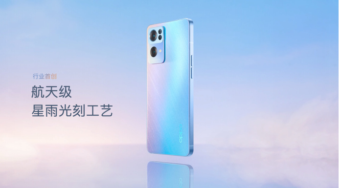 在Reno7系列的全新配色“星雨心愿”上,OPPO創造性地將航天級光刻工藝應用于手機后蓋,通過激光顯影技術在晶鉆工藝基礎上二次光刻,形成120萬道細密光柵紋理,讓玻璃后殼具備流星雨般的視覺觀感和立體觸感。在機身正面,Reno7系列采用行業領先的極窄邊框工藝,將屏占比提升至92.8%,視覺一體感更強。