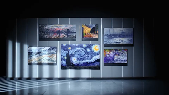 想象下這樣的場景,全家人茶余飯后一鍵打開10w+世界名畫的住居美術館,男主人對浮現在眼前的木板油畫《圣羅馬諾之戰》中透視構圖感到癡迷;長輩分享古人“九山八海”的世界觀,大面積排布菱形莫高窟石窟畫如置身山巒中;小孩子喜歡手機上傳圖片,壁畫電視M160特有的低反啞光屏,讓家里的老照片也能展示出逼真質感。家庭的過去、現在和將來,在光影間被娓娓道來……